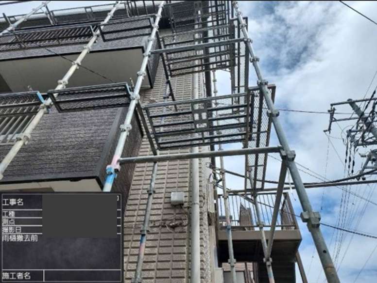 足場を建てる際に隣接する駐車場に停まっている車を