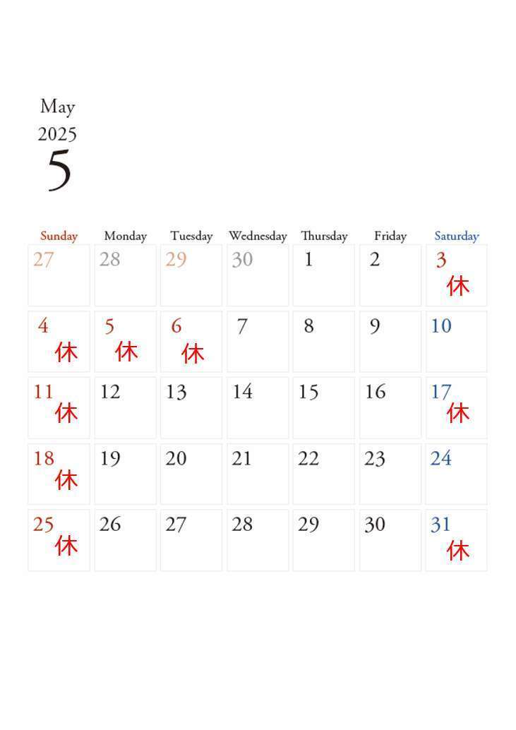 5月のお休み予定です☆彡